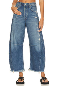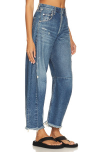 - 100% cotton - Made in USA - Machine wash - Button fly - Light whiskering and intentionally destroyed areas - Frayed raw-cut hem - Structured denim fabric.24" at the knee narrows to 18" at the leg opening - Revolve Style No. CITI-WJ1770 - Manufacturer Style No. 1972B-769