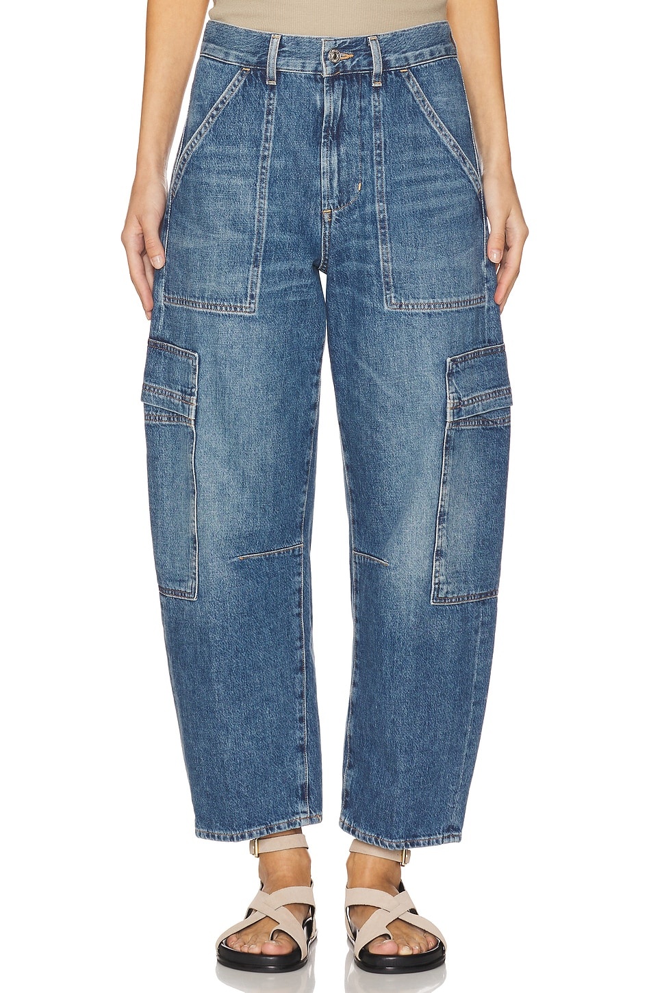 - 100% regenerative cotton - Made in Turkey - Machine wash - Zip fly with button closure.6-pocket design - Denim fabric with cargo pocket design.22" at the knee narrows to 17" at the leg opening - Revolve Style No. CITI-WJ1964 - Manufacturer Style No. 2078B-1136