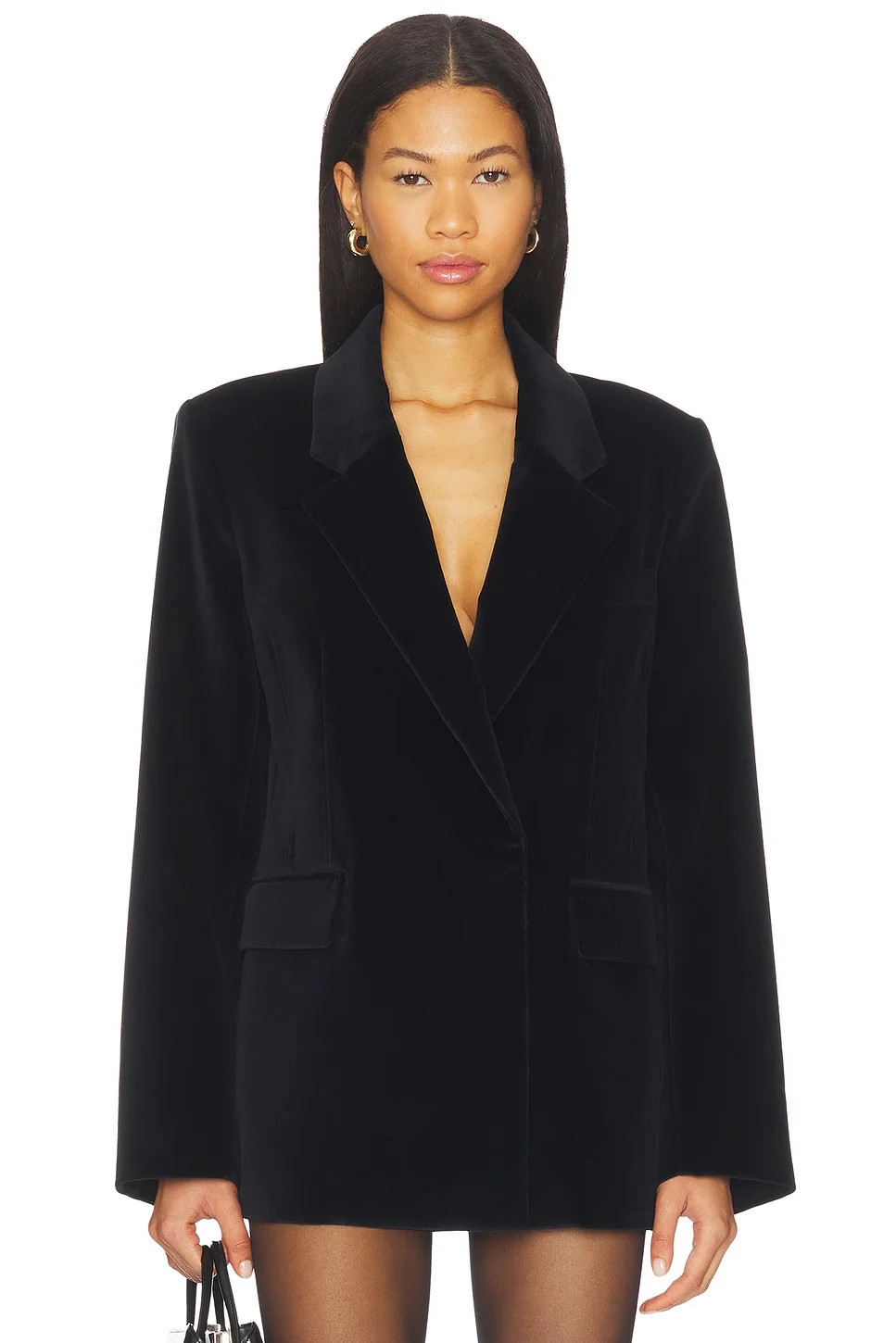 - Self: 100% cotton Lining: 100% acetate - Made in Turkey - Dry clean - Front button closure - Velvet fabric - Faux front flap pockets - Revolve Style No. CITI-WO141 - Manufacturer Style No. 5153B