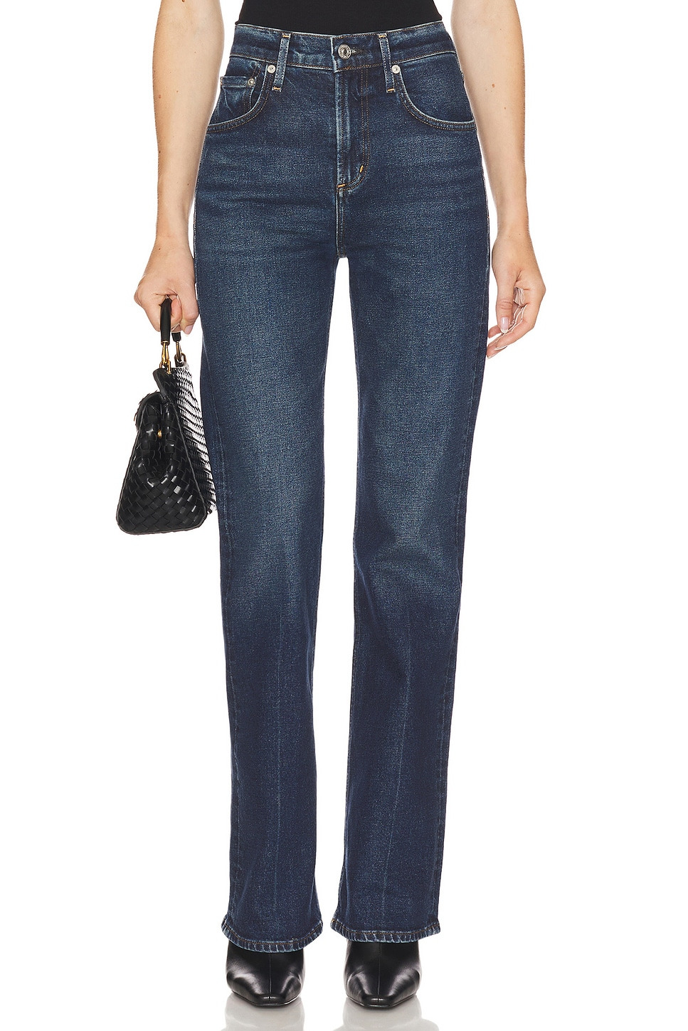 - 98% cotton 2% polyurethane - Made in Turkey - Machine wash - Zip fly and button.5-pocket design - Rigid denim.17" at the knee breaks to 18" at the leg opening - Revolve Style No. CITI-WJ1904 - Manufacturer Style No. 2099C-3009