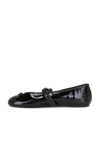 - Crinkle patent leather upper with rubber sole - Silver-tone metal buckle strap closure - Cushioned leather footbed with textile lining - Signature tonal C logo detailing - Rounded toe - Revolve Style No. COAH-WZ217 - Manufacturer Style No. CBO90 BLK