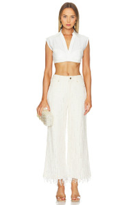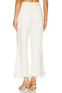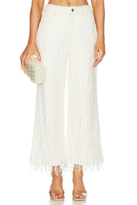 - Shell: 100% cotton Lining 100% cotton - Made in India - Dry clean recommended - Zip fly with button closure.5-pocket design - Beaded fringe with pearl accents.21" at the knee and 21" at the leg opening - Revolve Style No. CULG-WJ5 - Manufacturer Style No. PT3228CO2326