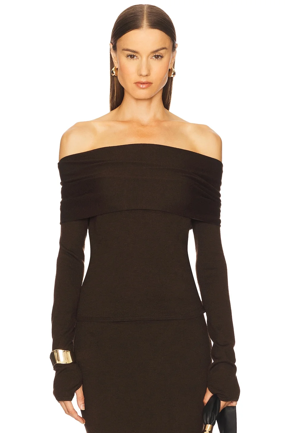- 45% acrylic 30% wool 25% nylon - Hand wash - Pull-on styling - Off the shoulder styling - Foldover neckline - Midweight knit fabric - Item not sold as a set - Revolve Style No. CULG-WS240 - Manufacturer Style No. TP28943YO3317