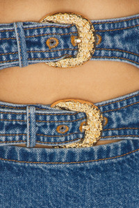 - 100% cotton - Made in Vietnam - Machine wash - Partially lined at bust - Hidden back zip closure - Halterneck styling with gold-tone buckle closure Front gold-tone buckle accents with cut-outs - Midweight denim fabric - Revolve Style No. CULG-WD388 - Manufacturer Style No. DL3206DN2915