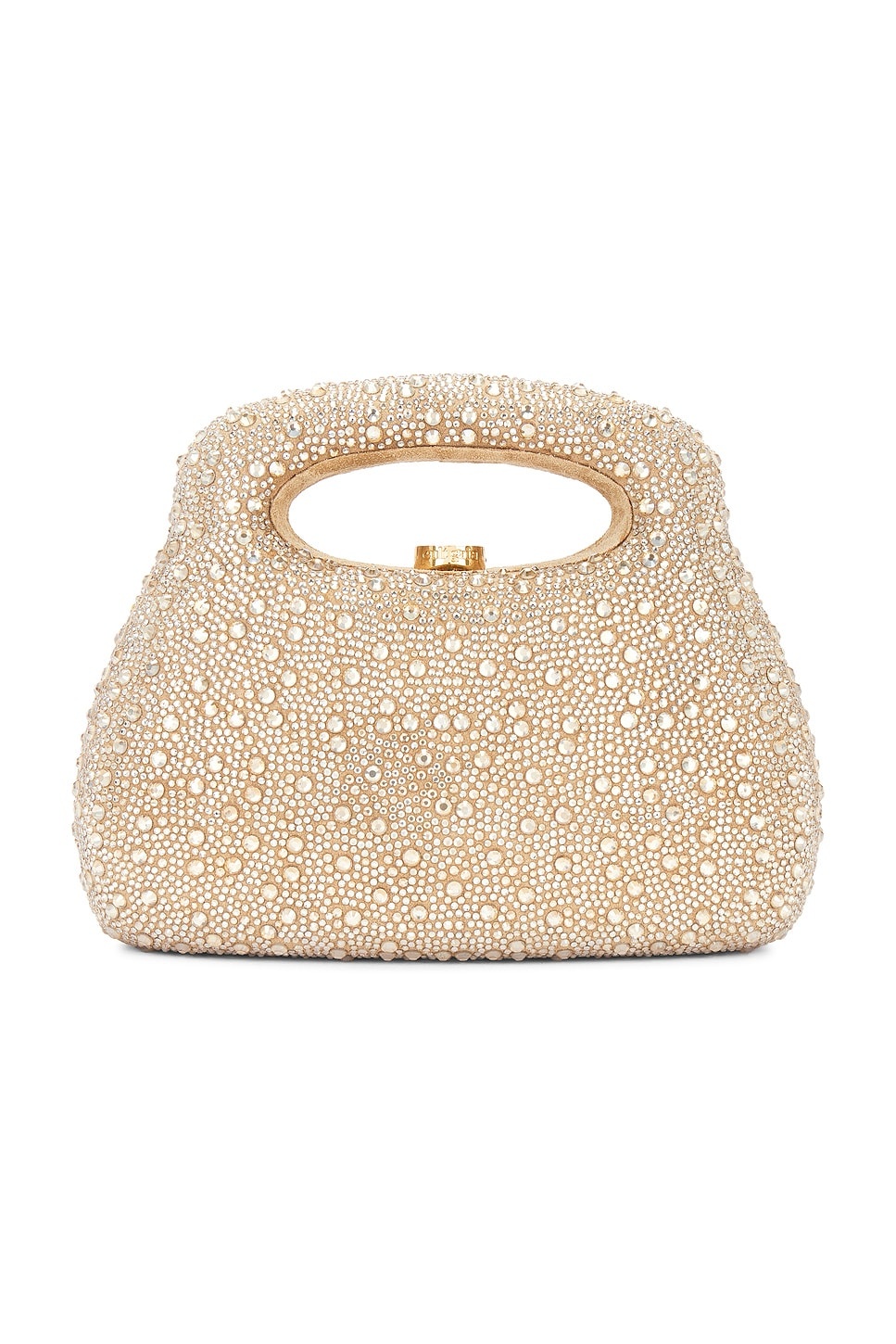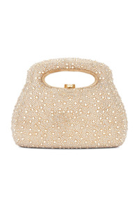 - Crystal embellished suede exterior with textile lining - Made in China - Structured frame with lift clasp closure - One main compartment - Measures approx 7.5" W x 4.25" H x 2" D Top handle with a 1.5" drop - Revolve Style No. CULG-WY279 - Manufacturer Style No. TH1442SD2260