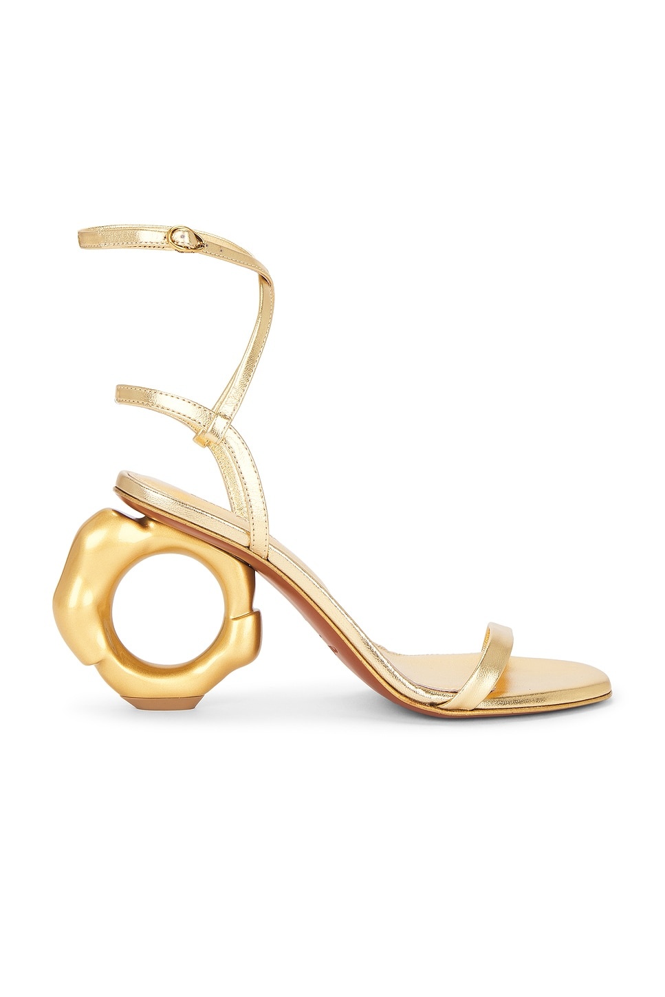 - Metallic leather upper with leather sole - Gold-tone ankle buckle closure - Cushioned leather footbed - Structural heel - Almond toe - Approx 90mm/ 3.5 inch heel - Revolve Style No. CULG-WZ176 - Manufacturer Style No. SD3658LR3049