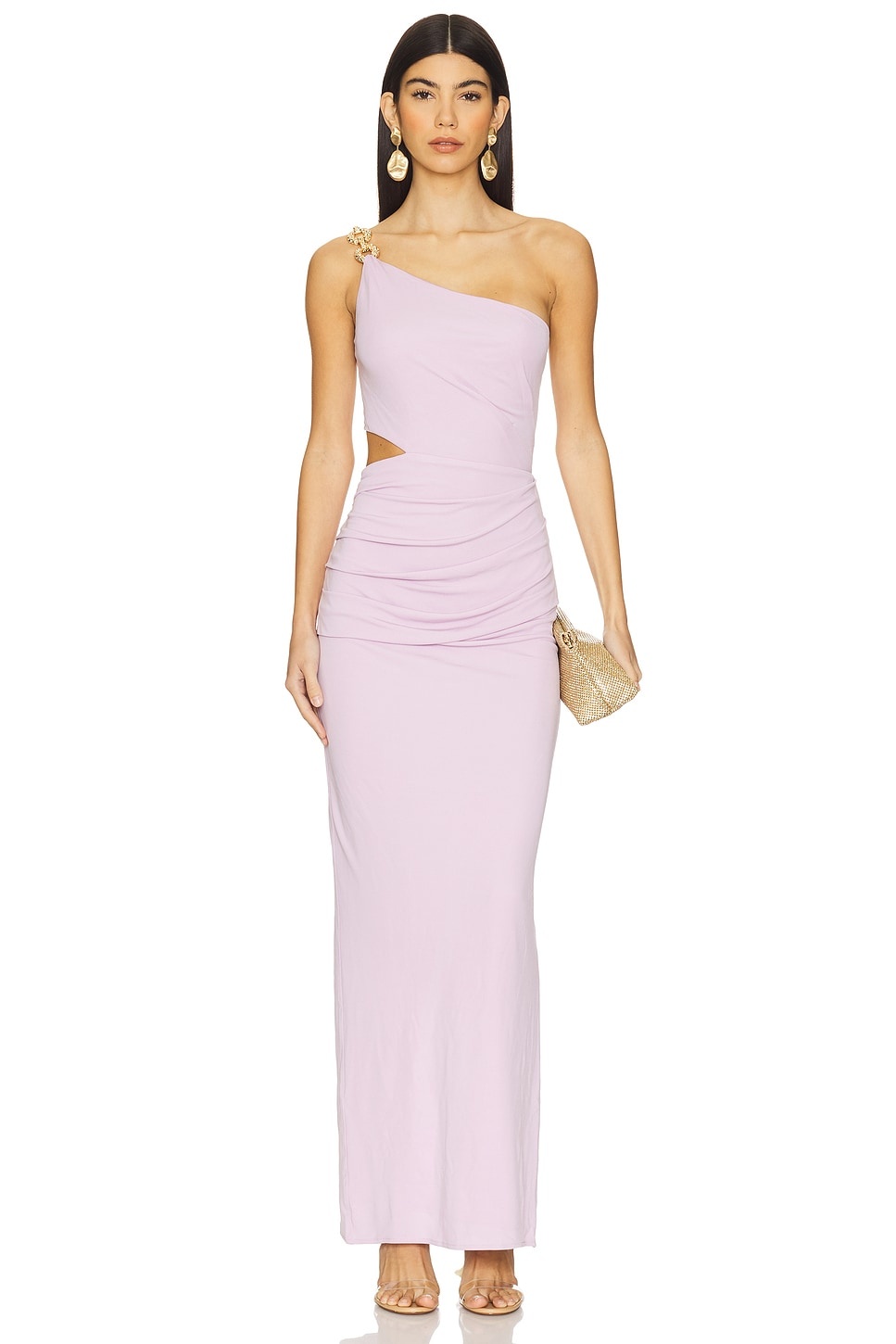 - 100% viscose - Made in China - Hand wash - Fully lined - Hidden side zipper closure - Cut-out design Gold-tone shoulder strap detail - Midweight jersey fabric with back vent - Revolve Style No. CULG-WD375 - Manufacturer Style No. GW3240JY1952