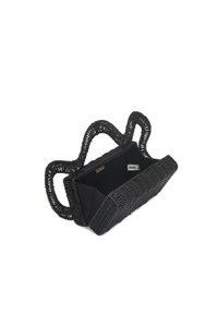 - Rattan exterior with textile lining - Made in China - Structured frame with kiss lock closure - One main compartment - Statement structured top handle - Measures approx 7.5" W x 3.75" H x 2.5" D Top handle with a 2" drop - Revolve Style No. CULG-WY332 - Manufacturer Style No. CL3389RT3081
