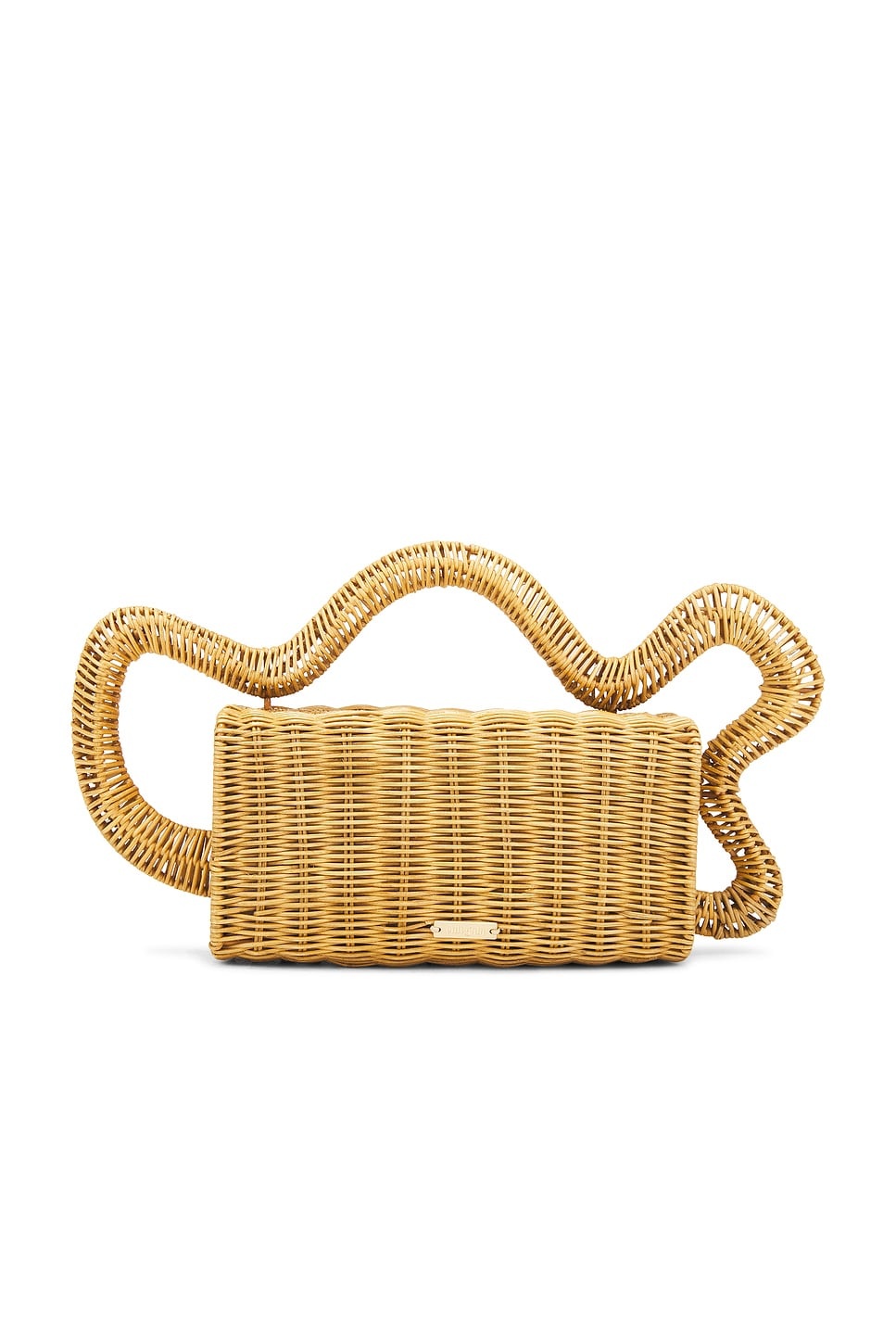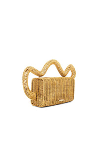 - Rattan exterior with twill lining - Made in China - Top magnetic closure - One main compartment - Wave top handle - Measures approx 7.25" W x 3.5" H x 2" D Shoulder strap with a 3" drop - Revolve Style No. CULG-WY313 - Manufacturer Style No. CL3389RT1235
