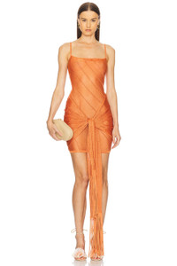 - 75% viscose 25% polyester - Made in China - Hand wash - Unlined - Pull-on styling - Adjustable shoulder straps Detachable wrap styling with knot accent and fringed ends - Midweight mesh fabric with metallic detailing Garment is made with a semi-sheer fabric, undergarments can show through - Revolve Style No. CULG-WD394 - Manufacturer Style No. KD3855YV2889