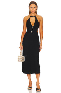 - 60% viscose 40% nylon - Made in China - Hand wash - Unlined - Halterneck styling with tie closure - Front gold-tone buckle detail - Back strappy design - Revolve Style No. CULG-WD195 - Manufacturer Style No. KD2742YV