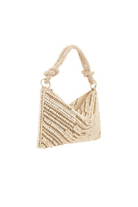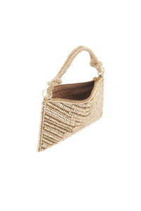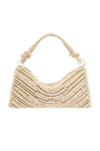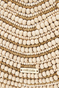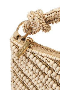 - Wooden beaded exterior with twill lining - Made in China - Top zipper closure - One main compartment - Integrated shoulder strap with knotted detailing - Measures approx 11" W x 5.5" H x 0.5" D Shoulder strap with a 3.5" drop - Revolve Style No. CULG-WY335 - Manufacturer Style No. SH2086WD3089