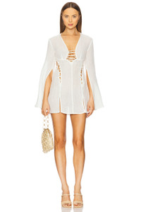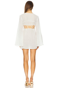 - 95% linen 5% nylon - Made in China - Dry clean only - Unlined - Pull-on styling - Chest and side lace-up cut-outs - Lightweight mesh fabric with split sleeves Garment is made with a semi-sheer fabric, undergarments can show through - Revolve Style No. CULG-WD371 - Manufacturer Style No. CV2539MS2784