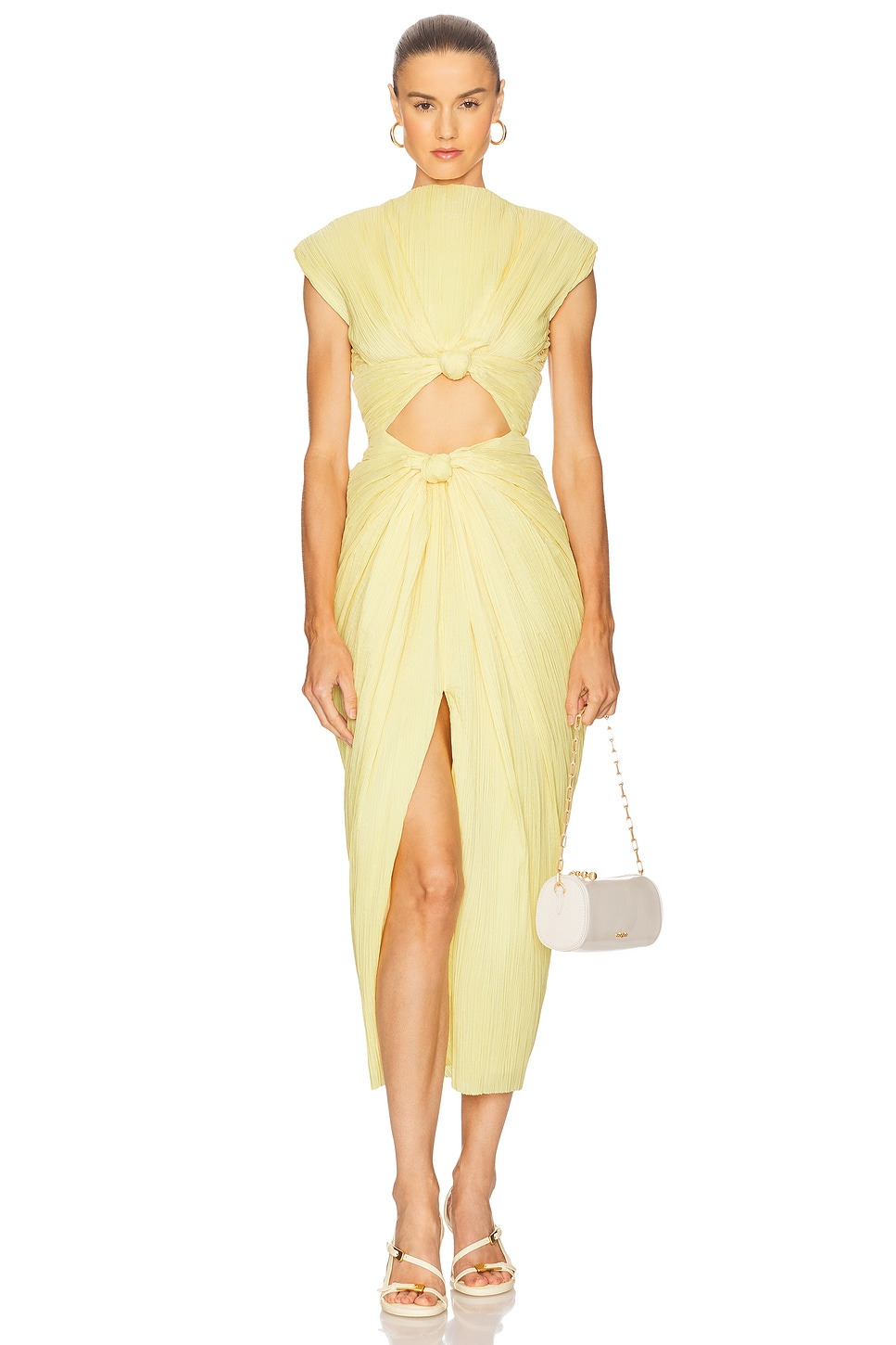 knot-detail pleated midi dress