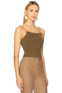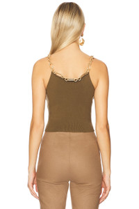 - 79% viscose 21% nylon - Dry clean only - Cropped styling - Gold-tone hardware at shoulder straps and neckline - Midweight knit fabric - Revolve Style No. CULG-WS222 - Manufacturer Style No. KT3852YN2611