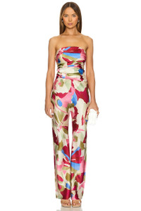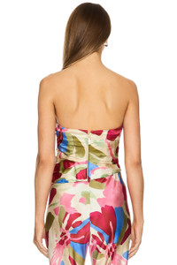 - Self: 92% silk 8% spandex Lining: 100% polyester - Made in China - Dry clean only - Hidden back zipper closure - Boned sides - Ruffled satin fabric - Item not sold as set - Revolve Style No. CULG-WS194 - Manufacturer Style No. TP5768SN1490