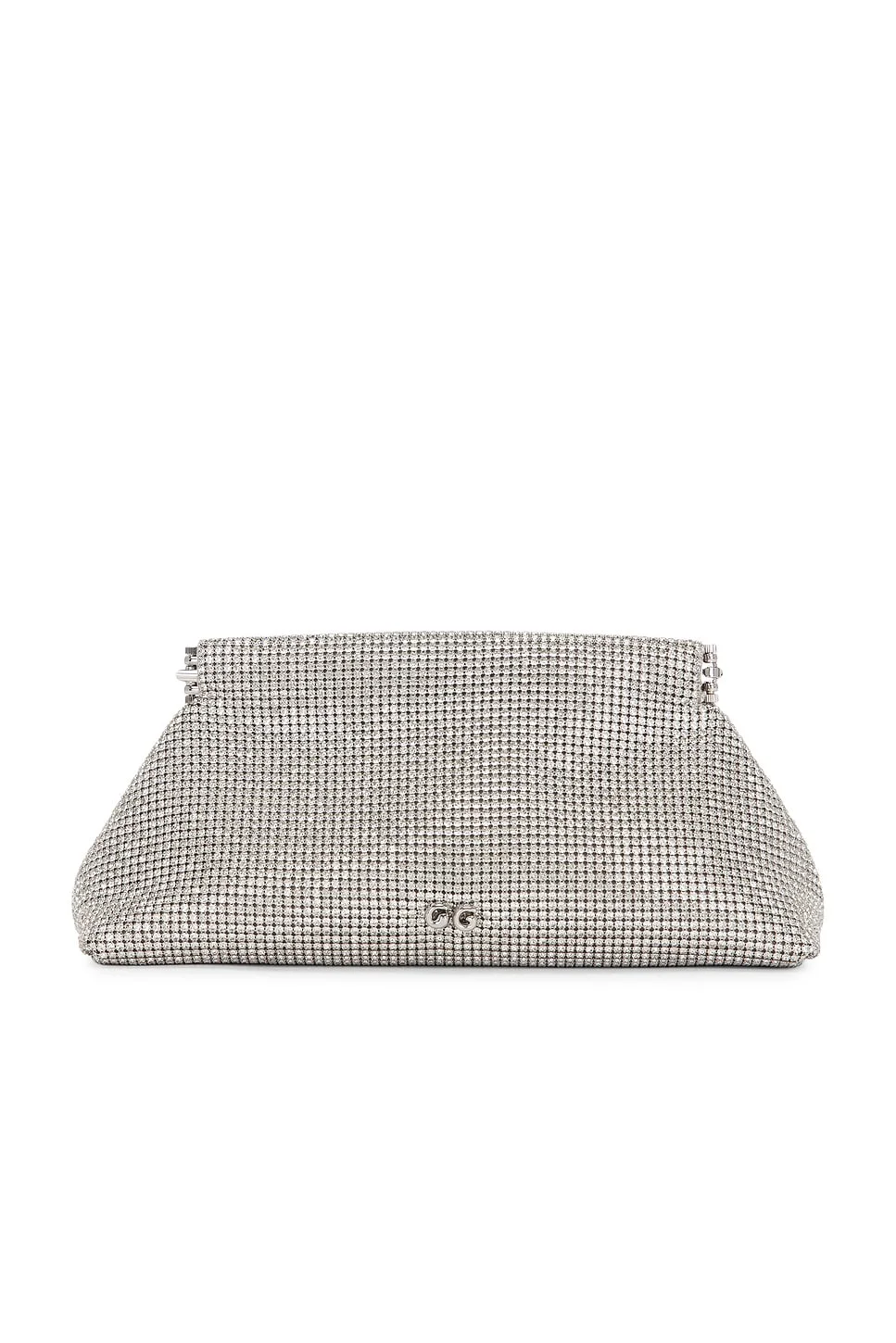- Rhinestone embellished exterior with textile lining and silver-tone hardware - Hinge closure - One main compartment - Measures approx 10.5" W x 5" H x 3.5" D - Revolve Style No. CULG-WY372 - Manufacturer Style No. HB3473CL2301