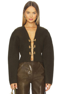 - 68% acrylic 12% polyester 11% nylon 6% wool 3% spandex - Dry clean only - Front gold-tone spring ring closure - Cropped fit - Heavyweight ribbed knit fabric - Revolve Style No. CULG-WK47 - Manufacturer Style No. SW28958WO1801