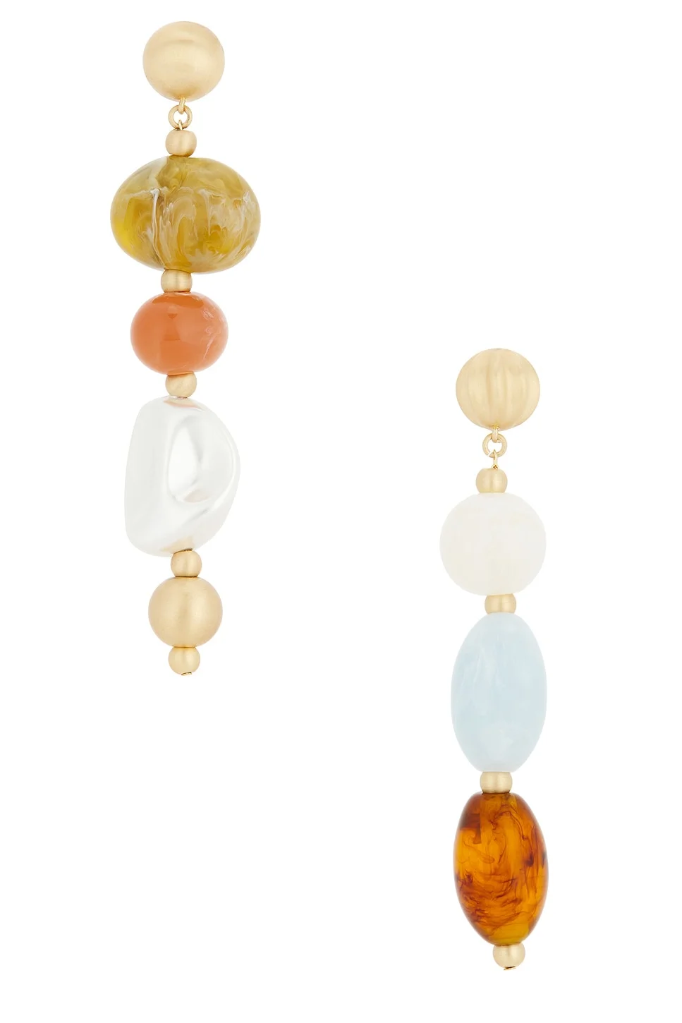 - Brass plated earrings with acrylic beads - Hinge closure - Asymmetrical design - Sold as a pair - Measures approx 4.25" in length - Revolve Style No. CULG-WL202 - Manufacturer Style No. ER3496AC3531