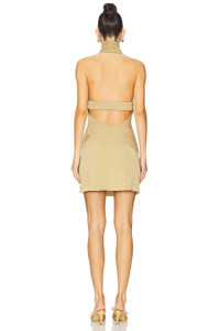 - 64% viscose 14% polyester 9% wool 10% nylon 3% spandex - Hand wash - Unlined - Pull-on styling - Halterneck and turtleneck styling - Back strap detailing with cut-out - Midweight metallic knit fabric - Revolve Style No. CULG-WD412 - Manufacturer Style No. KL4005YX1621