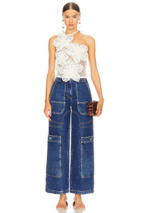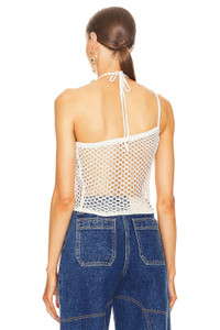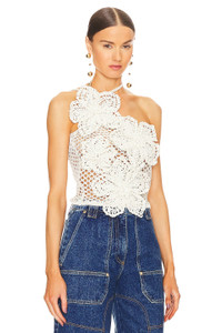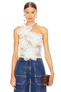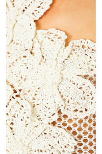 - 100% polyester - Made in China - Hand wash - Halterneck tie closure - Crochet knit fabric with floral accents at front - Garment is made with a semi-sheer fabric, undergarments can show through - Revolve Style No. CULG-WS133 - Manufacturer Style No. CT2753YN