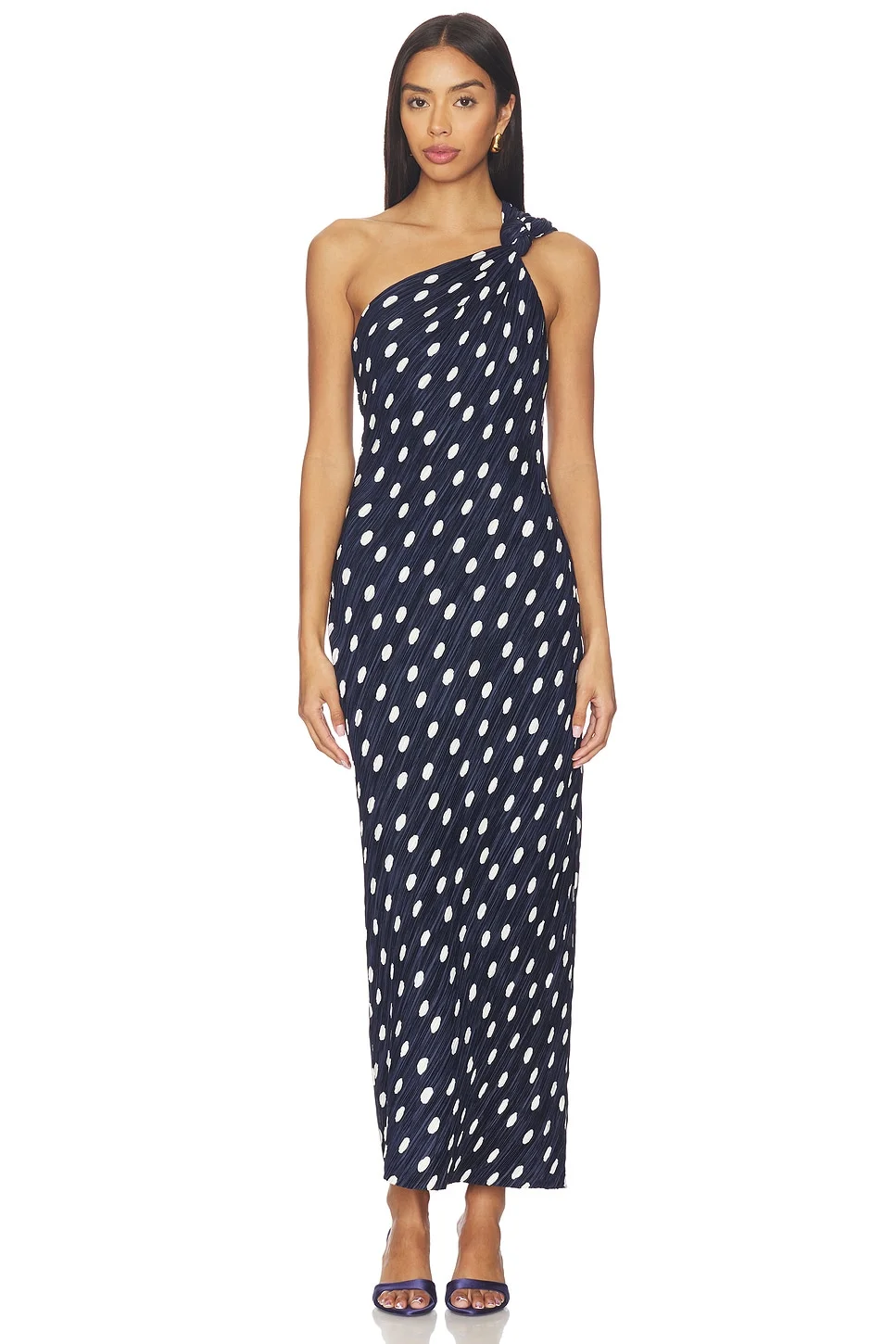 Terre one-shoulder dotted midi dress