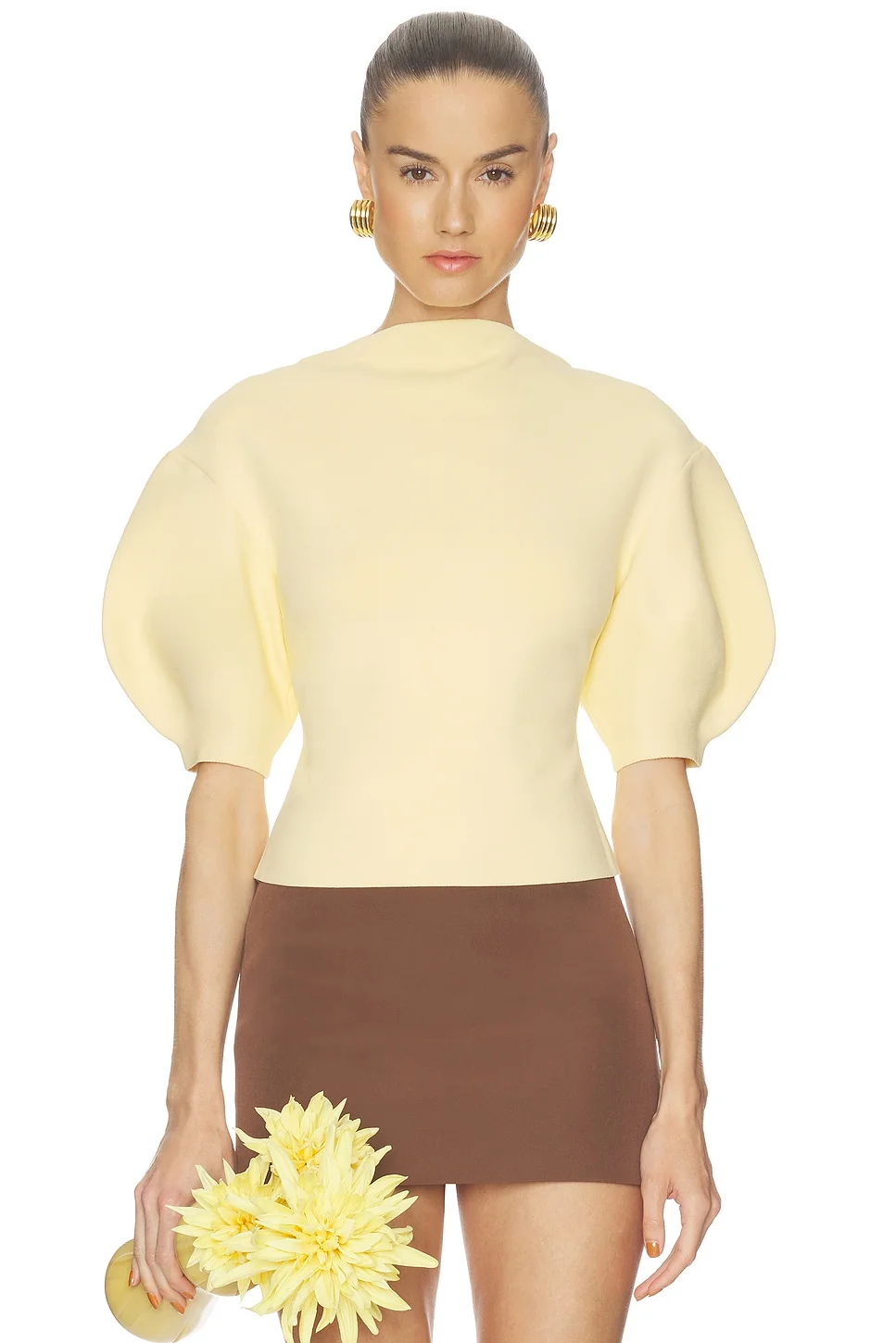 - 53% rayon 46% nylon 1% spandex - Made in China - Hand wash cold - Pull-on styling - Midweight ponte fabric - Puff sleeve - Revolve Style No. CULG-WS297 - Manufacturer Style No. SWTTP35262YV2418