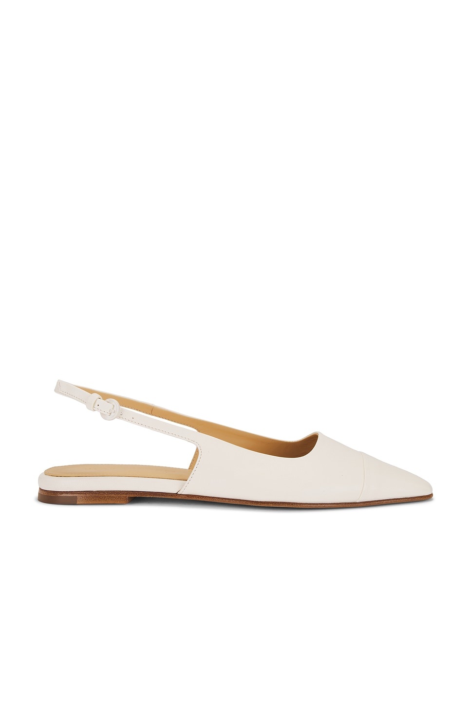 - Leather upper with leather sole - Made in Italy - Sling-back styling with adjustable buckled strap - Leather footbed and lining - Pointed square toe - Revolve Style No. DFRA-WZ2 - Manufacturer Style No. TIA04