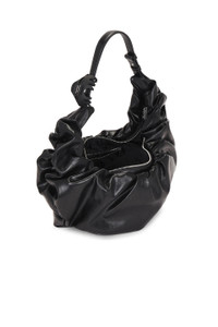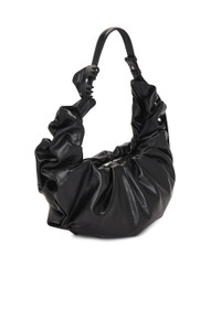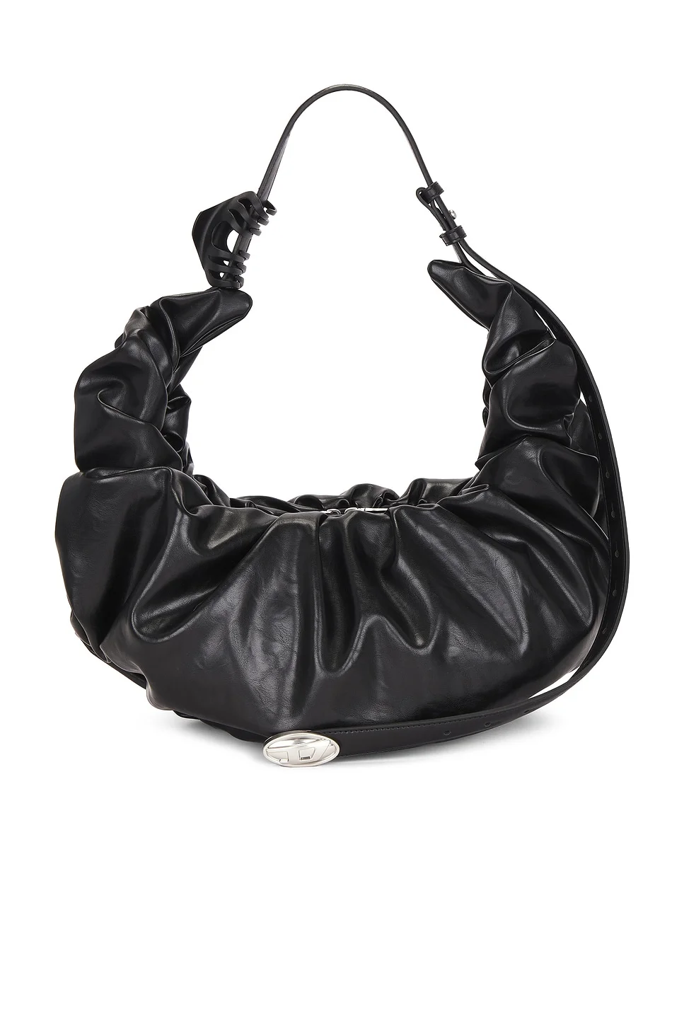 - Polyurethane exterior with textile lining - Top zipper closure - One main compartment - One interior zipper pocket - Ruched styling - Adjustable strap - Measures approx 17" W x 9" H x 4" D Shoulder strap with an 11.5" drop Top handle with a 3" drop - Revolve Style No. DIES-WY136 - Manufacturer Style No. X10478P8657