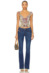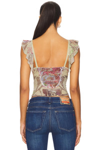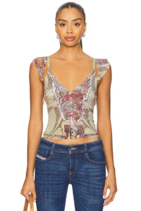 - 69% cotton 31% nylon - Hand wash - Front button closure - Diesel charm at back - Jersey fabric with flutter shoulder straps - Revolve Style No. DIES-WS444 - Manufacturer Style No. A18872