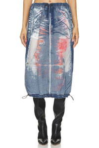 - Self: 78% cotton 22% nylon Contrast Fabric: 100% nylon - Made in Tunisia - Hand wash - Fully lined - Elastic drawcord waist and hem - Side welt pockets - Denim fabric with burnout panels - Skirt measures approx 30" in length - Revolve Style No. DIEF-WQ34 - Manufacturer Style No. A14527-068NJ-01