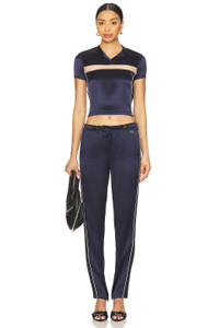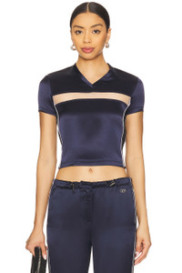 - Self: 73% acetate 27% polyester Contrast Fabric 1: 100% polyester Contrast Fabric 2: 100% nylon - Made in China - Machine wash - Cropped styling - Mesh panel accent at front - Midweight satin fabric with V-neck - Item not sold as a set - Revolve Style No. DIES-WS434 - Manufacturer Style No. A16740-0IKAJ