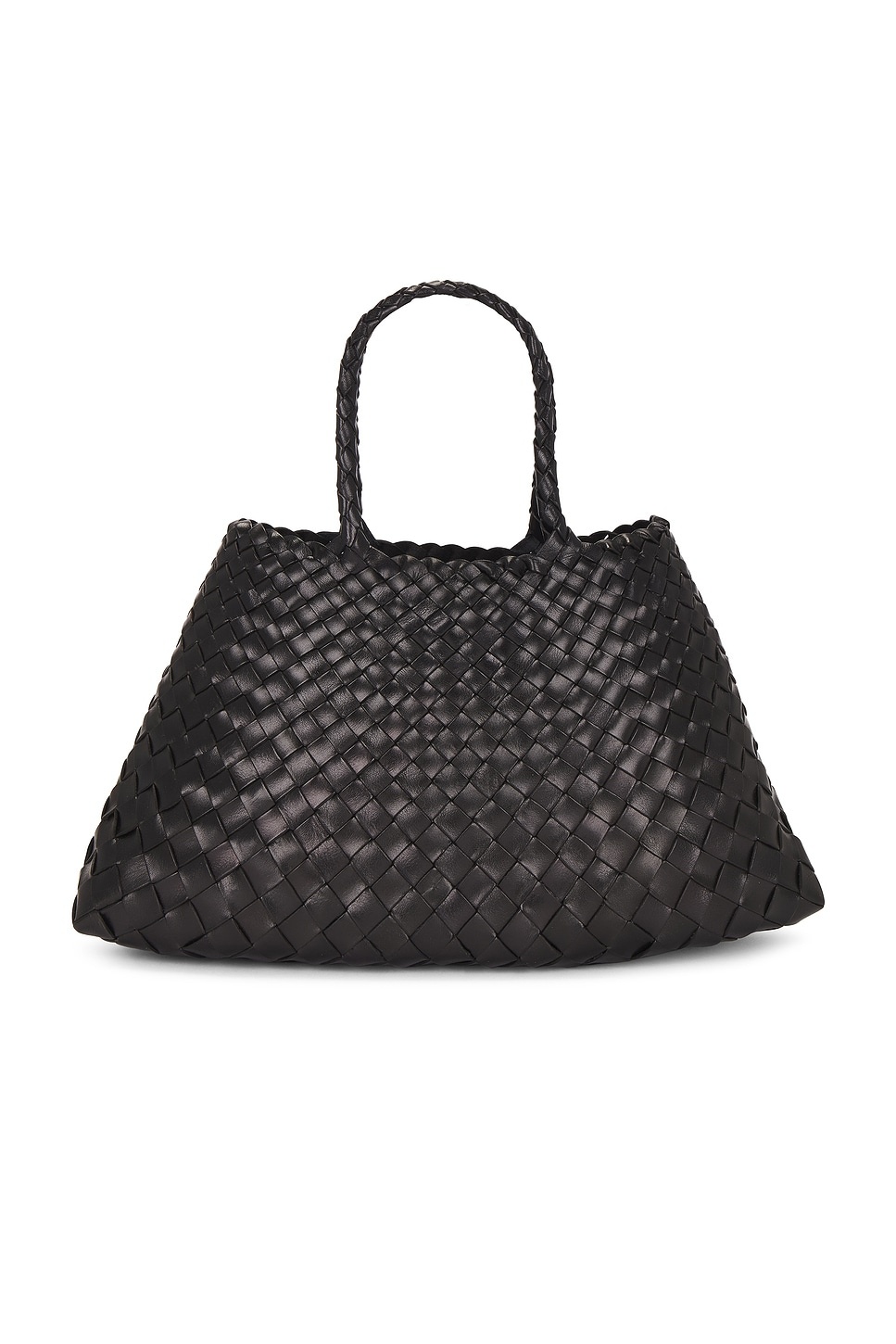 - Woven leather tote - Made in India - Open top - One main compartment - Dual braided top handles - Measures approx 15.5" W x 8" H x 3" D Top handle with a 6" drop - Revolve Style No. DRAR-WY7 - Manufacturer Style No. 8893