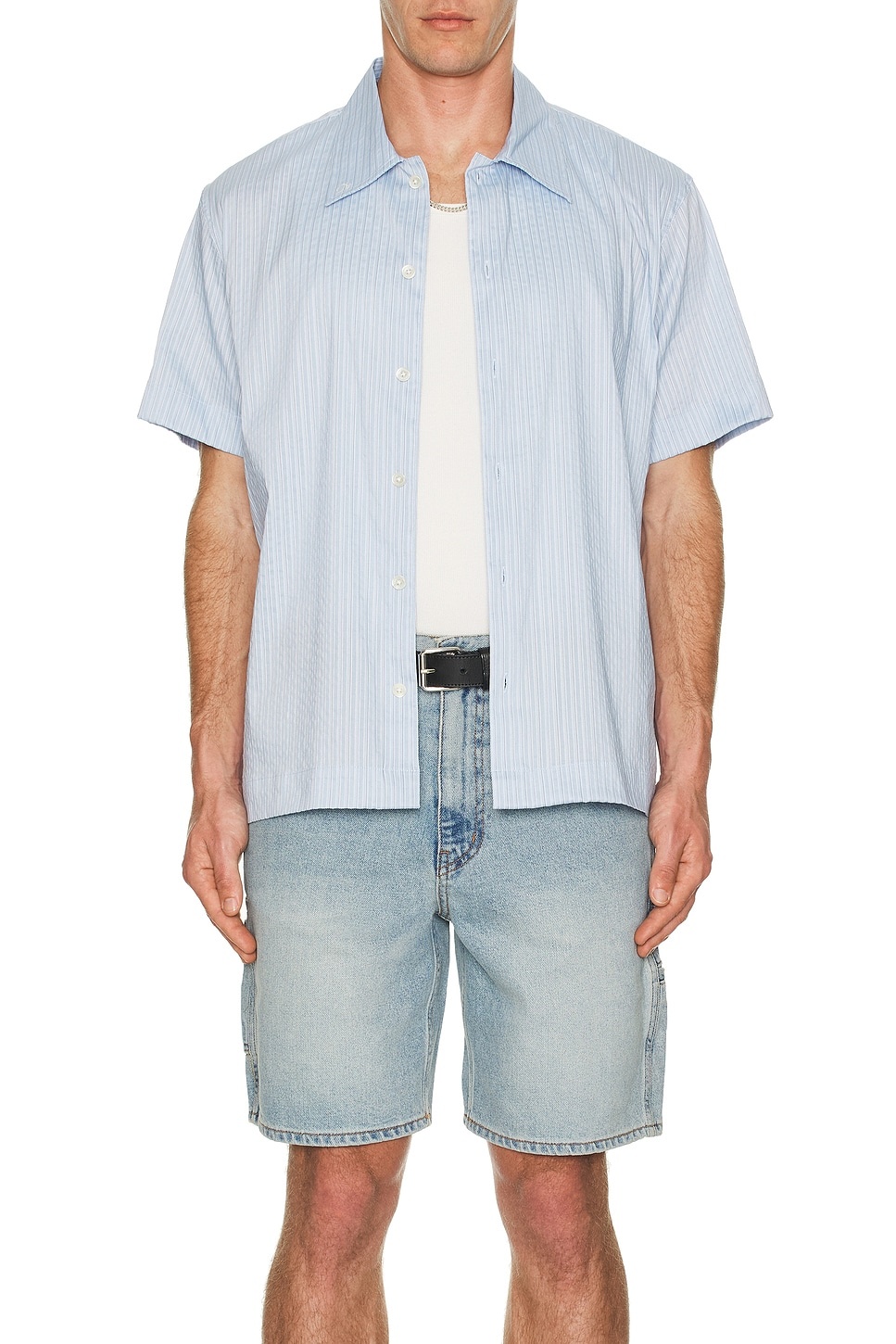 - 50% cotton 26% polyester 20% nylon 4% polyurethane - Made in China - Dry clean only - Front button closure - Seersucker fabric - Revolve Style No. DNST-MS9 - Manufacturer Style No. UDSH5B326B1