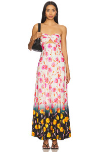 - Self: 85% viscose 15% polyamide Lining: 100% viscose - Machine wash cold - Fully lined - Hidden back zipper closure and non-slip silicone neckline - Ruched cups - Midweight voile fabric - Neckline to hem measures approx 50" in length - Revolve Style No. ESSE-WD61 - Manufacturer Style No. Heorgia