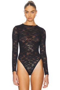 - Self 1: 37% nylon 29% recycled nylon 34% spandex Self 2: 95% silk 5% spandex Gusset: 100% cotton - Made in Myanmar - Hand wash - Button loop closure on back with snap button gusset closure - Garment is intentionally sheer, undergarments will show through - Please note undergarment not included - Revolve Style No. FLER-WS122 - Manufacturer Style No. BS0435