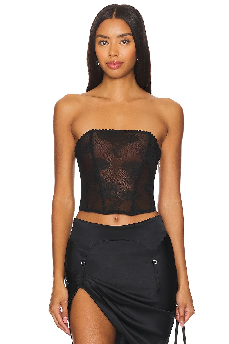 - Self: 79% polyamide 21%elastane Combo: 85% polyamide 15% elastane - Made in China - Hand wash - Exposed side zip closure - Boned bodice - Floral lace fabric - Revolve Style No. FLER-WS116 - Manufacturer Style No. TP0619
