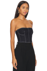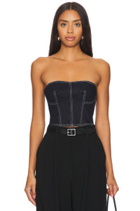 - Self: 100% cotton Lining: 97% cotton 3% spandex - Made in China - Machine wash - Exposed back zipper closure - Boned at bodice - Cropped fit - Revolve Style No. FLER-WS112 - Manufacturer Style No. TP0588
