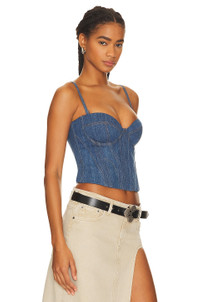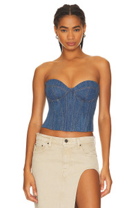 - Self: 92% cotton 7% polyester 1% elastane Contrast Fabric: 65% cotton 32% polyamide 3% elastane - Made in China - Machine wash - Exposed back zipper closure - Lightly padded underwire cups - Boned bodice - Detachable shoulder straps - Revolve Style No. FLER-WS59 - Manufacturer Style No. TP0527