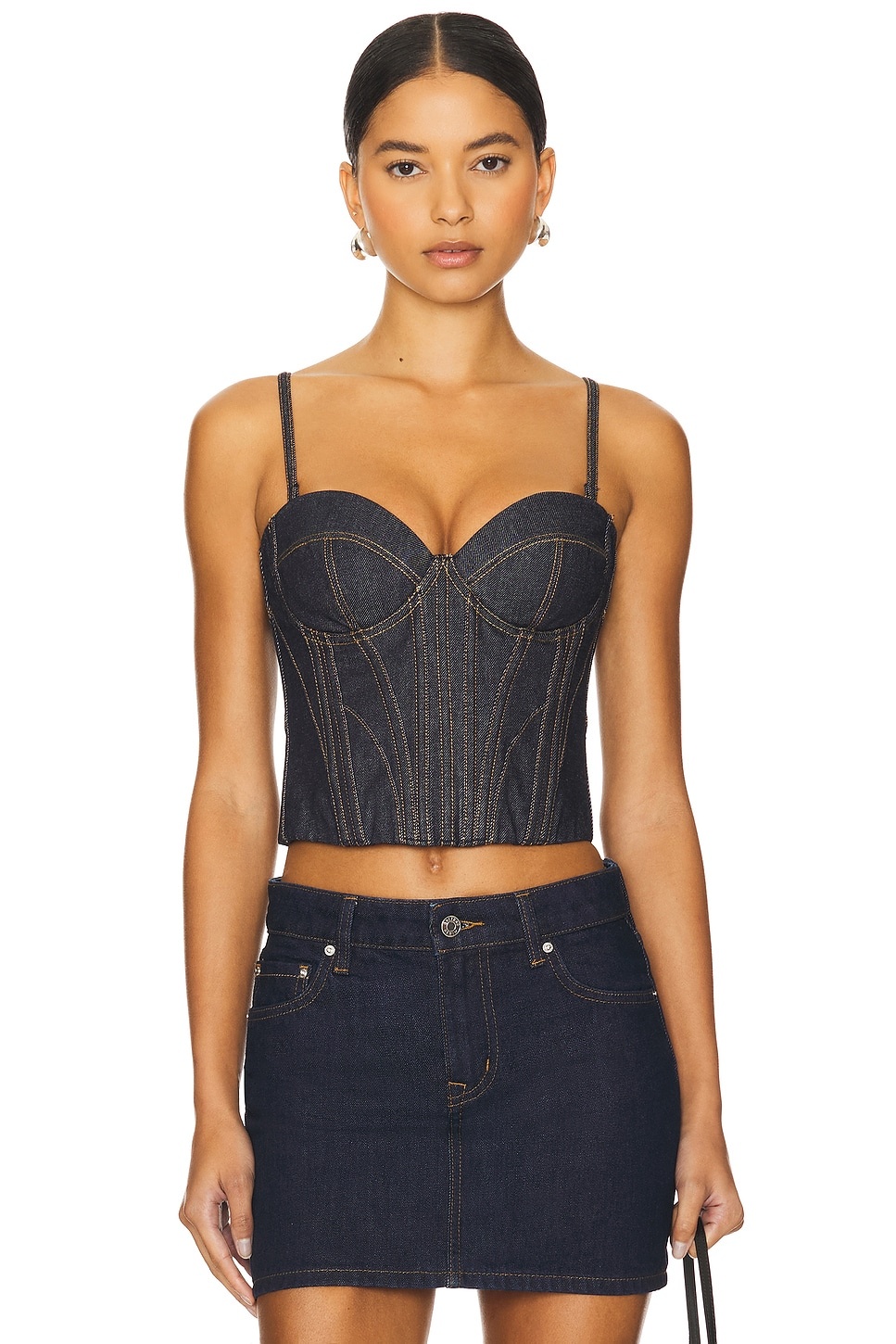 - Self: 100% cotton Lining: 65% cotton 32% polyamide 3% elastane - Made in China - Machine wash - Exposed back zip closure - Lightly padded underwire cups - Detachable and adjustable shoulder straps - Bonded bodice - Revolve Style No. FLER-WS118 - Manufacturer Style No. TP0527
