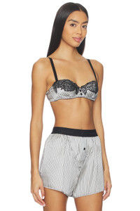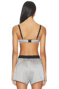 - Self: 92% silk 8% elastane Contrast Fabric: 61% recycled nylon 20% nylon 19% elastane - Made in Indonesia - Hand wash cold - Hook closure - Satin fabric with lace trim - Adjustable shoulder straps - Revolve Style No. FLER-WI582 - Manufacturer Style No. BR0502