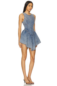 - Denim textile - Machine wash cold recommended - Unlined - Back zipper closure - Midweight rigid denim fabric with flared skirt and asymmetrical hem - Revolve Style No. FLER-WD103 - Manufacturer Style No. DR0581