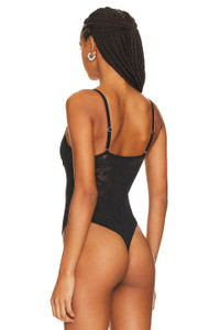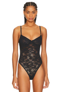 - Self: 37% nylon 34% spandex 29% recycled nylon Contrast Fabric 1: 95% silk 5% spandex Contrast Fabric 2: 100% cotton - Made in Myanmar - Hand wash - Gusset snap button closure with thong back - Unpadded underwire bra - Adjustable satin shoulder straps - Lace fabric - Revolve Style No. FLER-WS74 - Manufacturer Style No. BS0394
