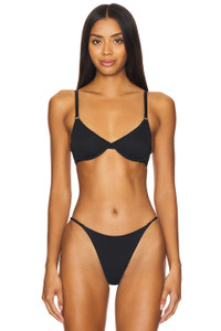 - Self 1: 67% nylon 33% spandex Self 2: 92% silk 8% spandex - Made in Myanmar - Hand wash - Unlined - Back hook and eye closure - Adjustable shoulder straps - Revolve Style No. FLER-WI508 - Manufacturer Style No. BR0388