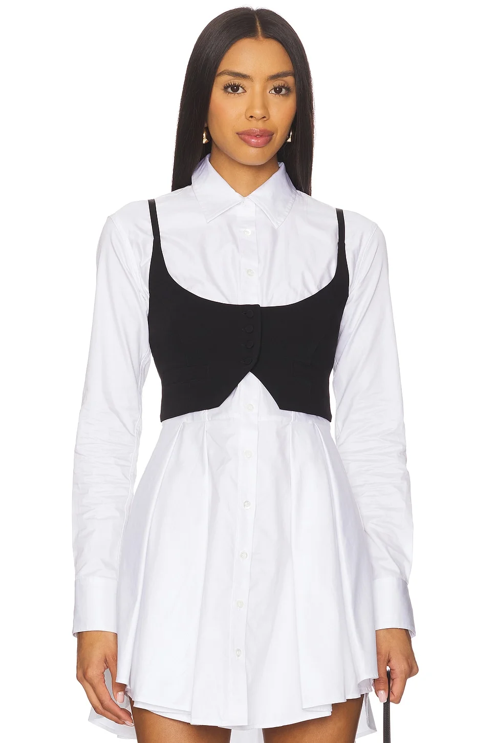 - Body: 100% Recycled Polyester Combo 1: 92% Silk & 8% Spandex Combo 2: 78% Polyamide & 22% Spandex Lining: 45% Viscose & 55% Polyester - Dry clean only - Exposed front buttons closure - Adjustable straps - Powermesh back - Faux fron pockets - Revolve Style No. FLER-WS178 - Manufacturer Style No. TP0693