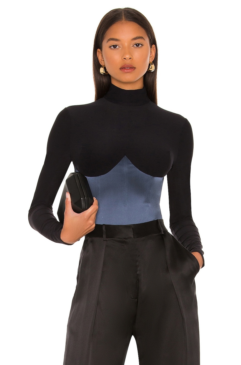 - Self 1: 65% polyamide 35% elastane Self 2: 76% acetate 21% polyamide 3% elastane Gusset Lining: 100% cotton - Made in China - Dry clean only - Hidden back zipper closure - Gusset snap button closure with thong back - Boned bodice with satin fabric - Stretch knit accent fabric - The Mock Neck Long Sleeve Bodysuit from Fleur Du Mal is a sexy going out top that flatters the waist and bust - Tip: the top runs small, so size up! - Revolve Style No. FLER-WS31 - Manufacturer Style No. BS0199