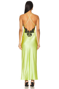 - Self: 100% silk Contrast Fabric: 49% polyamide 28% cotton 23% lyocell - Dry clean only - Unlined - Hidden back zip closure Adjustable shoulder straps - Back lace contrast - Midweight satin fabric - Revolve Style No. FLER-WD102 - Manufacturer Style No. DR0624
