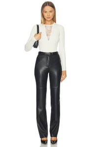- Body: 72% Viscose 28% polyester Gusset: 100% cotton Lace: 50% polyamide 28% cotton 23% lyocell - Made in China - Hand wash cold - Ribbed texture - Pull-on styling - V-neck long sleeve - Lace insert - Revolve Style No. FLER-WS176 - Manufacturer Style No. BS0495
