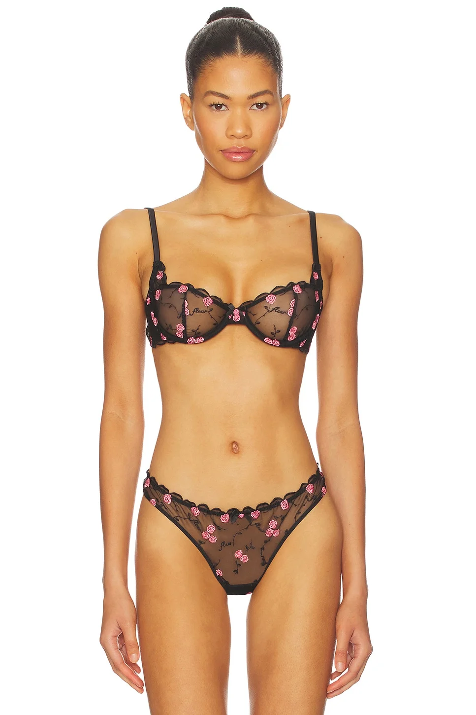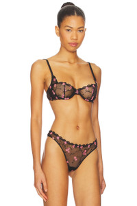 - Self 1: 100% polyamide Self 2: 100% polyester Self 3: 91% polyamide 9% elastane Self 4: 92% silk 8% elastane - Made in Indonesia - Hand wash - Hook and eye closures at back Adjustable straps - Unpadded Underwire cups - Mesh textile with embroidery throughout and satin trims - Decorative bow at front - Revolve Style No. FLER-WI580 - Manufacturer Style No. BR0424