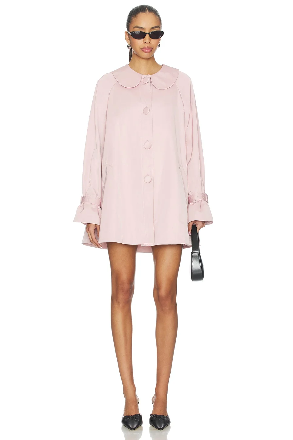 - Self: 66% polyester 34% cotton Lining: 100% polyester - Made in China - Dry clean - Front button-down closure - Side slant pockets - Midweight canvas textile - Buckled cuffs - Peter pan collar design - Revolve Style No. FORL-WO44 - Manufacturer Style No. CJ0104-SP26-PINK
